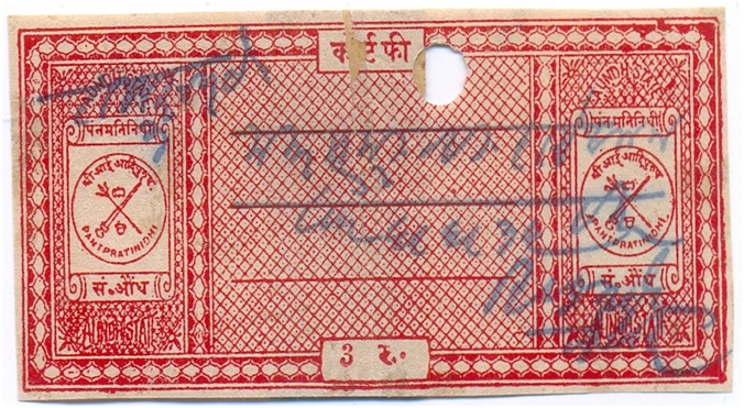 Four Annas, Red , Hindi numeral , Ref. # 54